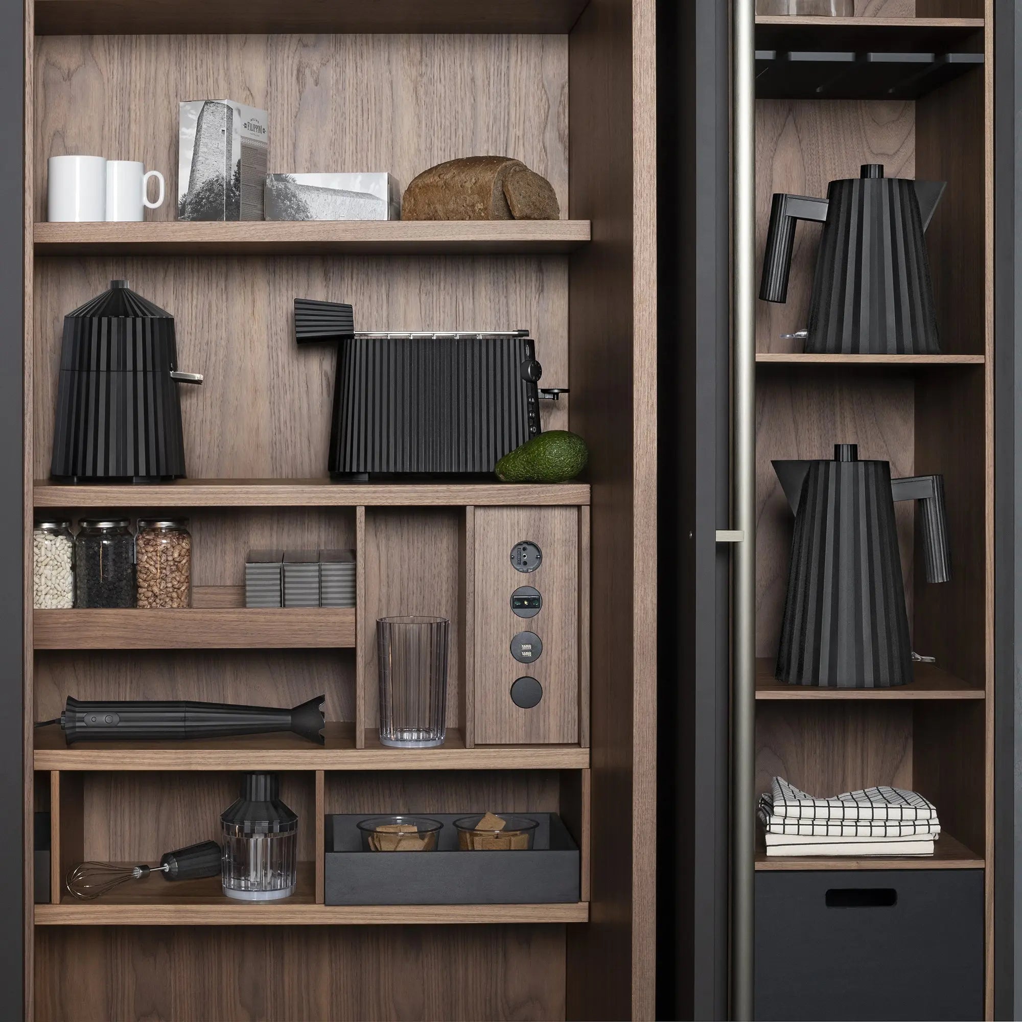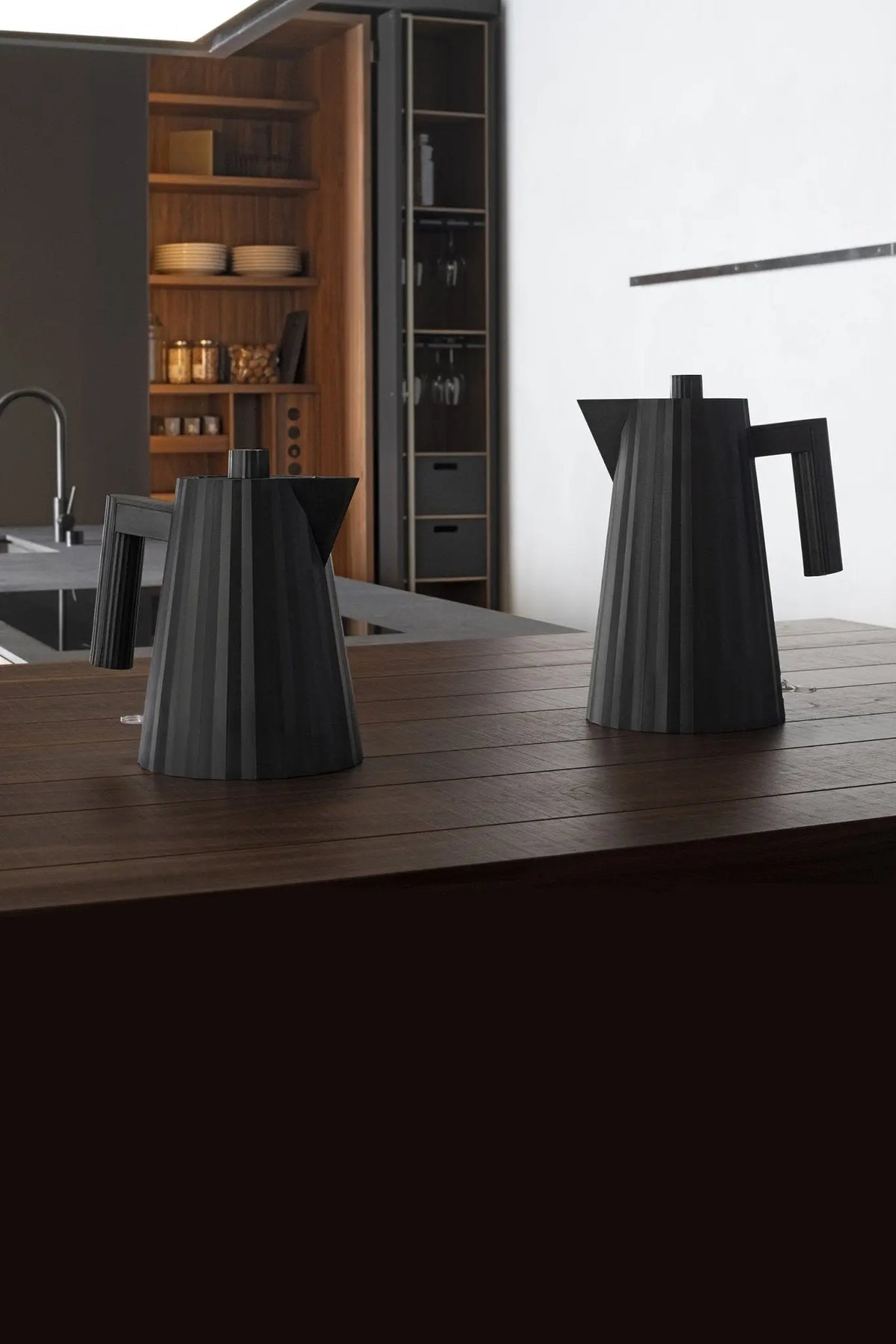 MDL06 vedenkeittimessä yhdistyvät paitsi tyylikäs muotoilu, mutta myös käytönnölliset ominaisuudet. Moderni laskostettu pinta kutsuu pitämään vedenkeitintä esillä keittiön tasolla myös silloin, kun se ei ole käytössä. Tehokas, mutta turvallinen Plissé on varustettu turvakytkimellä, joka katkaisee automaattisesti virran veden määrän ollessa liian alhainen. Alessi Plissé on Michele De Lucchin vuonna 2018 suunnittelema vedenkeitin, joka soveltuu estettiikkansa ansiosta myös veden tarjoiluun. Vedenkeittimen lämpöeristetty pinta takaa sen, että kannun voi laskea pöytäpinnalle huoletta ilman pannunalusta. Plissé vedenkeittimessä on kalkinpoistosuodatin.