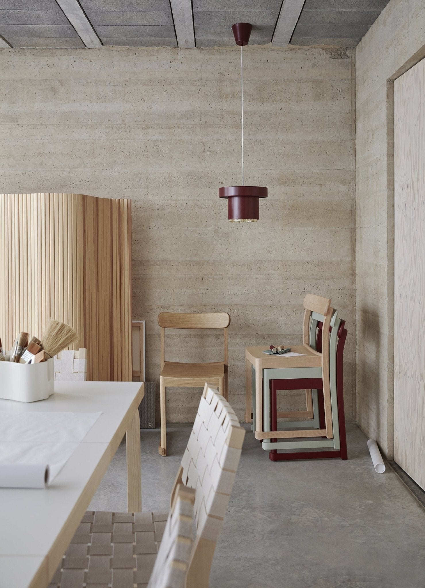 Artek 611 tuoli koivu/luonnonvärinen-punainen