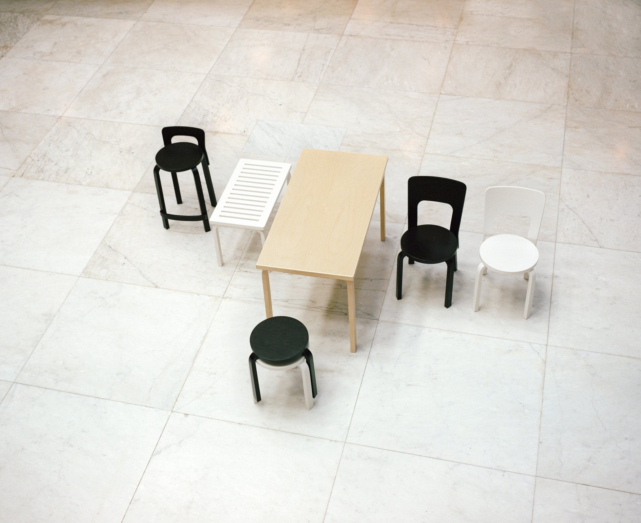 Artek 68 tuoli istuin valkoinen laminaatti