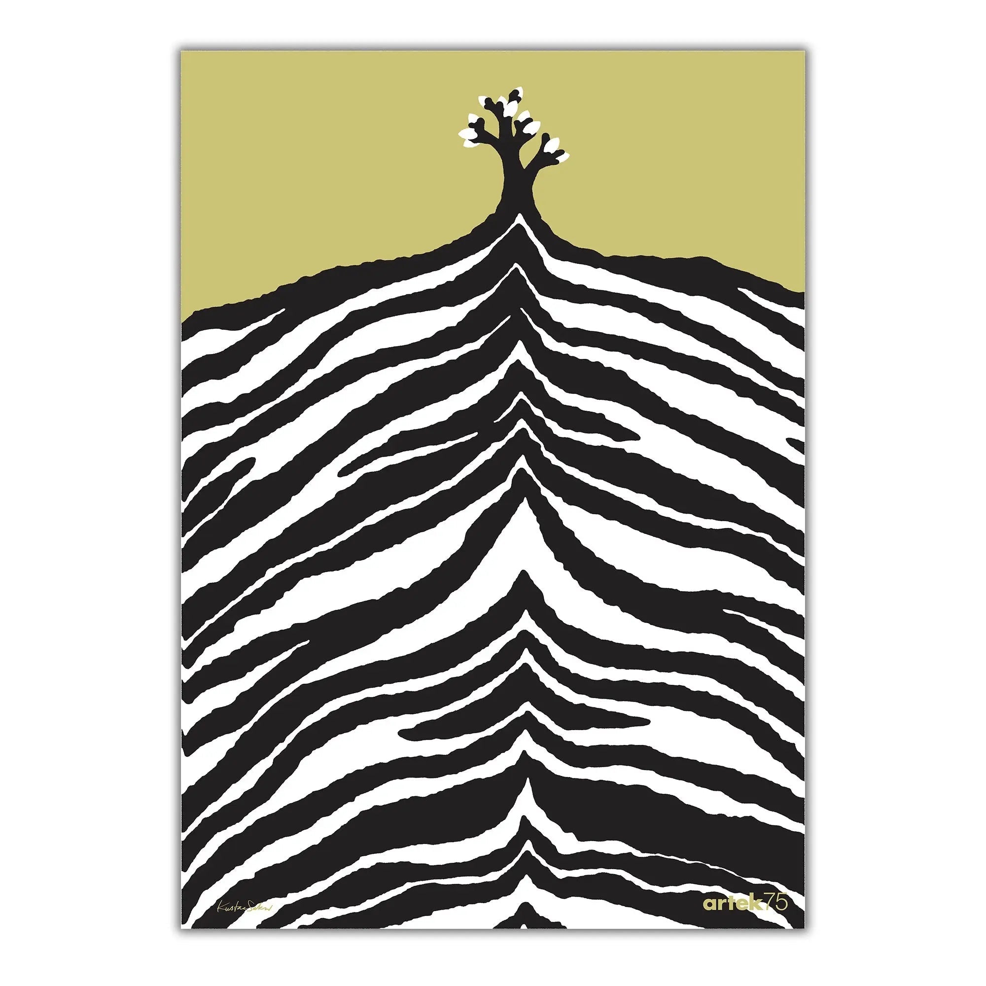 Artek 75v juhlajuliste on suunniteltu Artekin 75. juhlavuoden kunniaksi. Taitelija Kustaa Saksin suunnittelema juliste kuvastaa Artekin läheistä suhdetta luontoon ja luonnonmateriaaleihin. Artek 75v juhlajulisteeseen on kuvitettu rinne, yksinäinen puu ja taivaanranta. Rinteessä nähdään tuttu Zebra-kuosi, joka on ollut suuressa osassa Artekin tuotantoa jo 1930-luvulta. Juliste on painettu laadukkaalle Litho-paperille.