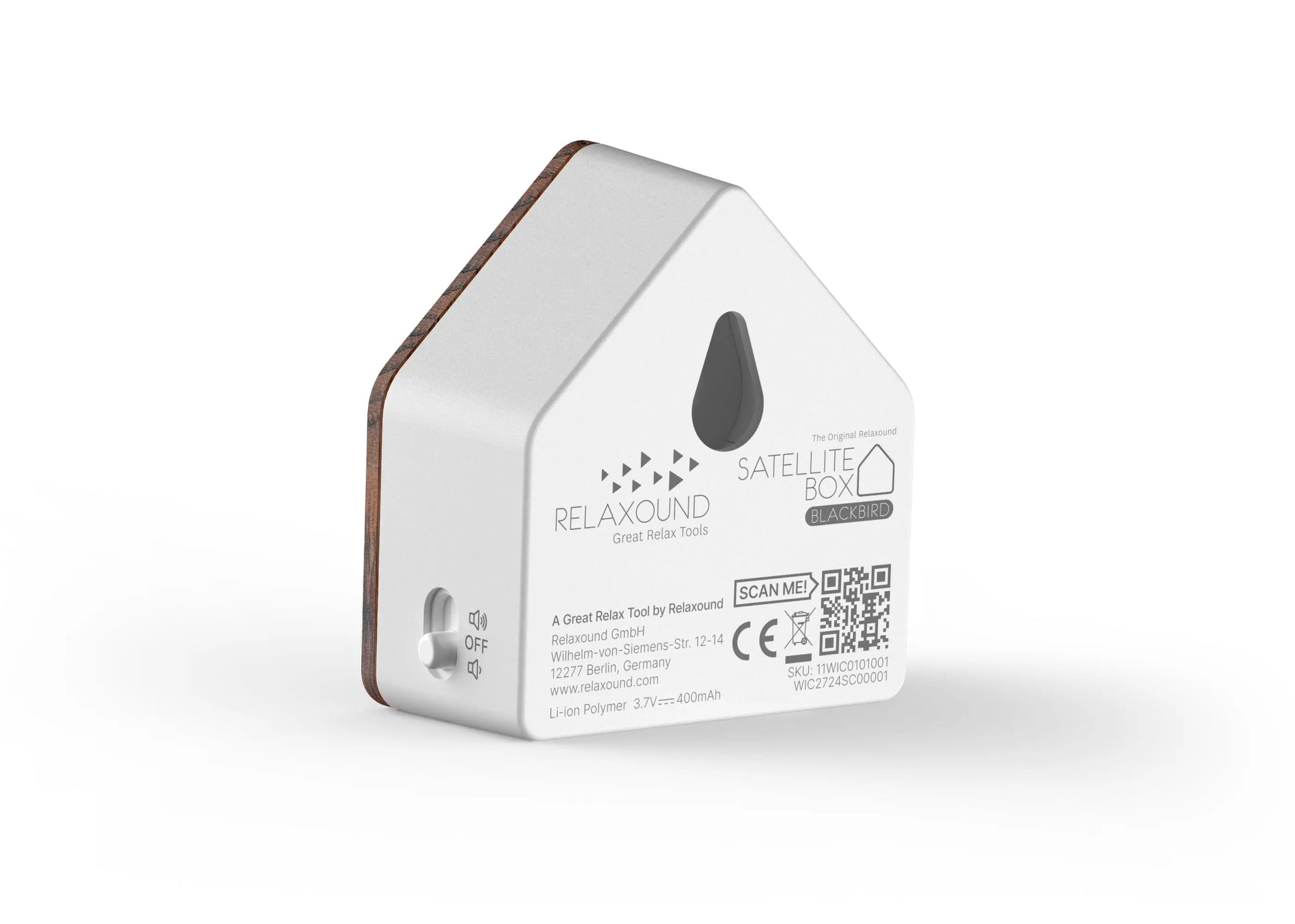 Relaxound Satellitebox tuo kotiisi rauhoittavan ja inspiroivan äänimaailman. Sen selkeä, luonnollinen ääni soi 60 sekunnin ajan ja aktivoituu liiketunnistimella, kun kuljet sen ohi. Voit kuunnella ääntä sellaisenaan tai yhdistellä eri Satelliteboxeja luodaksesi juuri sinulle sopivan tunnelman.