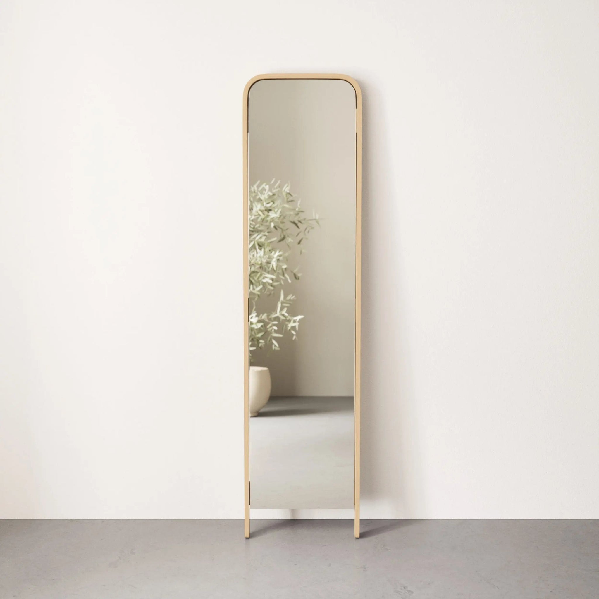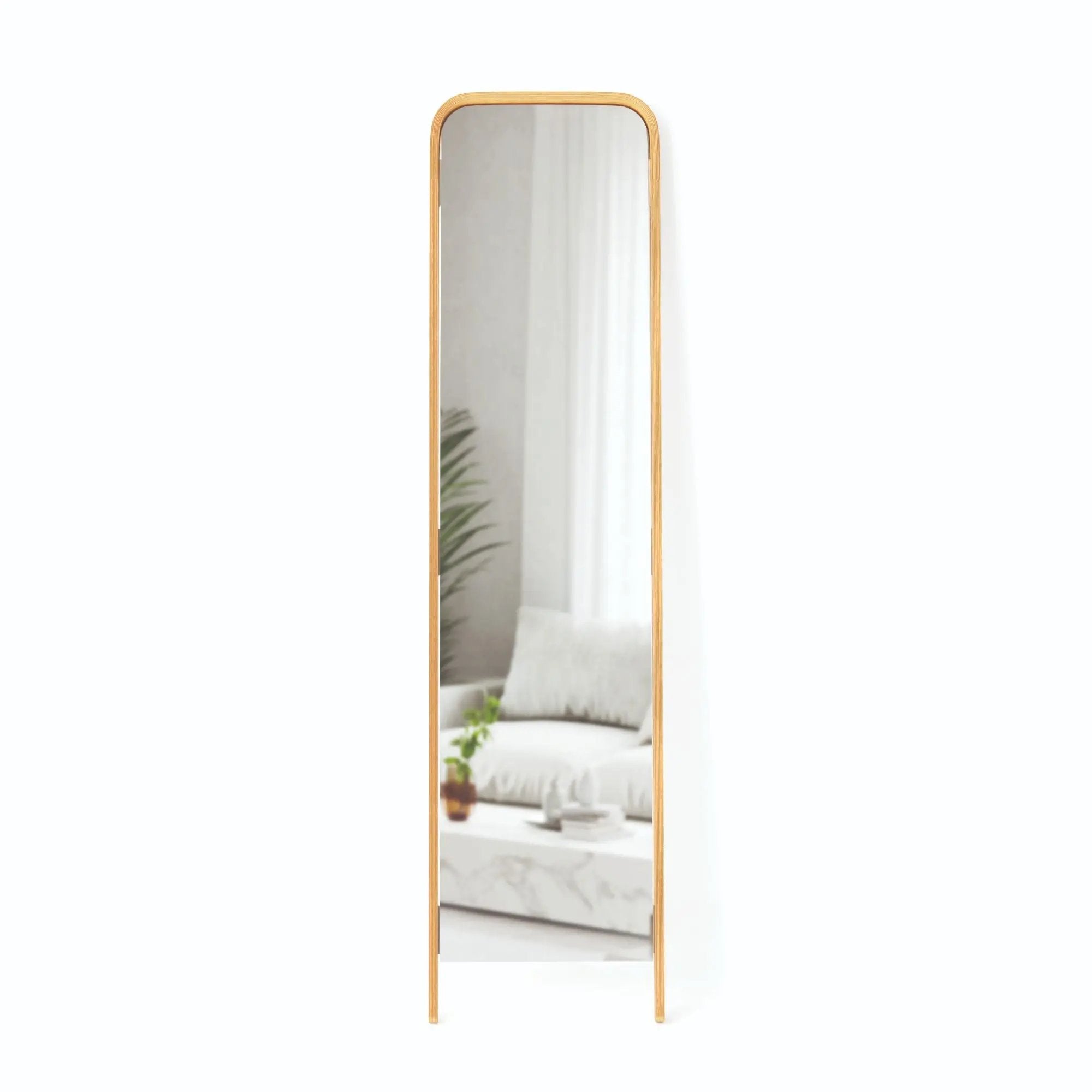 Umbra Bellwood Leaning -peili on näyttävä sisustuselementti, joka vetää katseet puoleensa missä tahansa tilassa. Sen kaunis kehys on valmistettu vastuullisesti hankitusta saarnista ja eukalyptuspuusta, mikä tuo peiliin luonnollista lämpöä ja kestävyyttä. Tyylikäs muotoilu ja luonnonmateriaalien harmoninen yhdistelmä tekevät siitä ajattoman lisän niin moderniin kuin klassiseenkin sisustukseen.