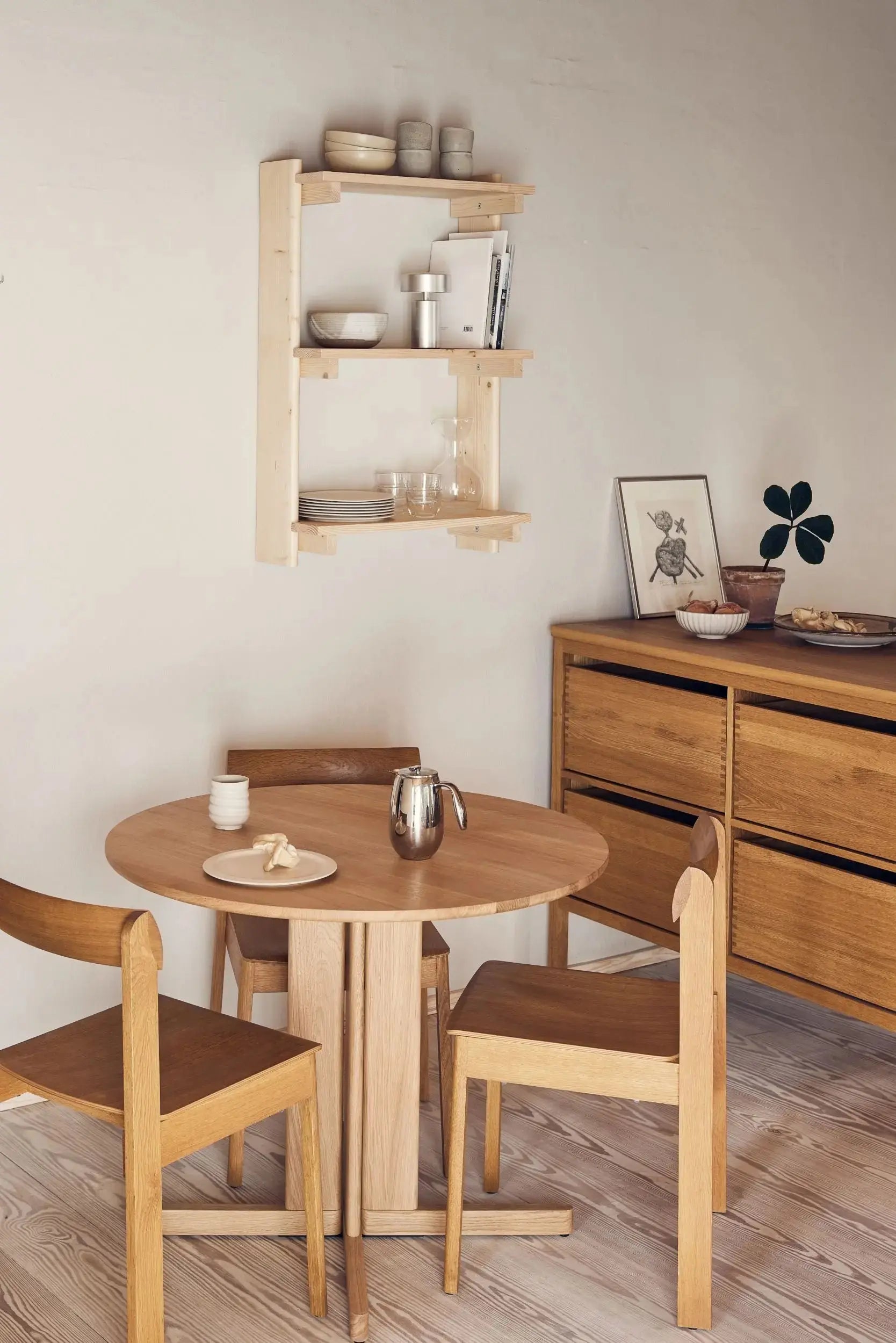 Beam-mallisto hyödyntää FSC®-sertifioitua bosnialaista mäntyä, joka on peräisin vastuullisesti hoidetuista metsistä. Männyn luontainen eläväisyys näkyy ajan myötä syntyvinä naarmuina ja jälkinä, jotka muodostavat kauniin patinan – jokainen hylly saa oman ainutlaatuisen ilmeensä. Puun oksakohdat ja vaihtelevat syykuviot tuovat tuotteeseen aitoa ja luonnollista luonnetta, jossa pienet epätäydellisyydet ovat osa sen viehätystä.