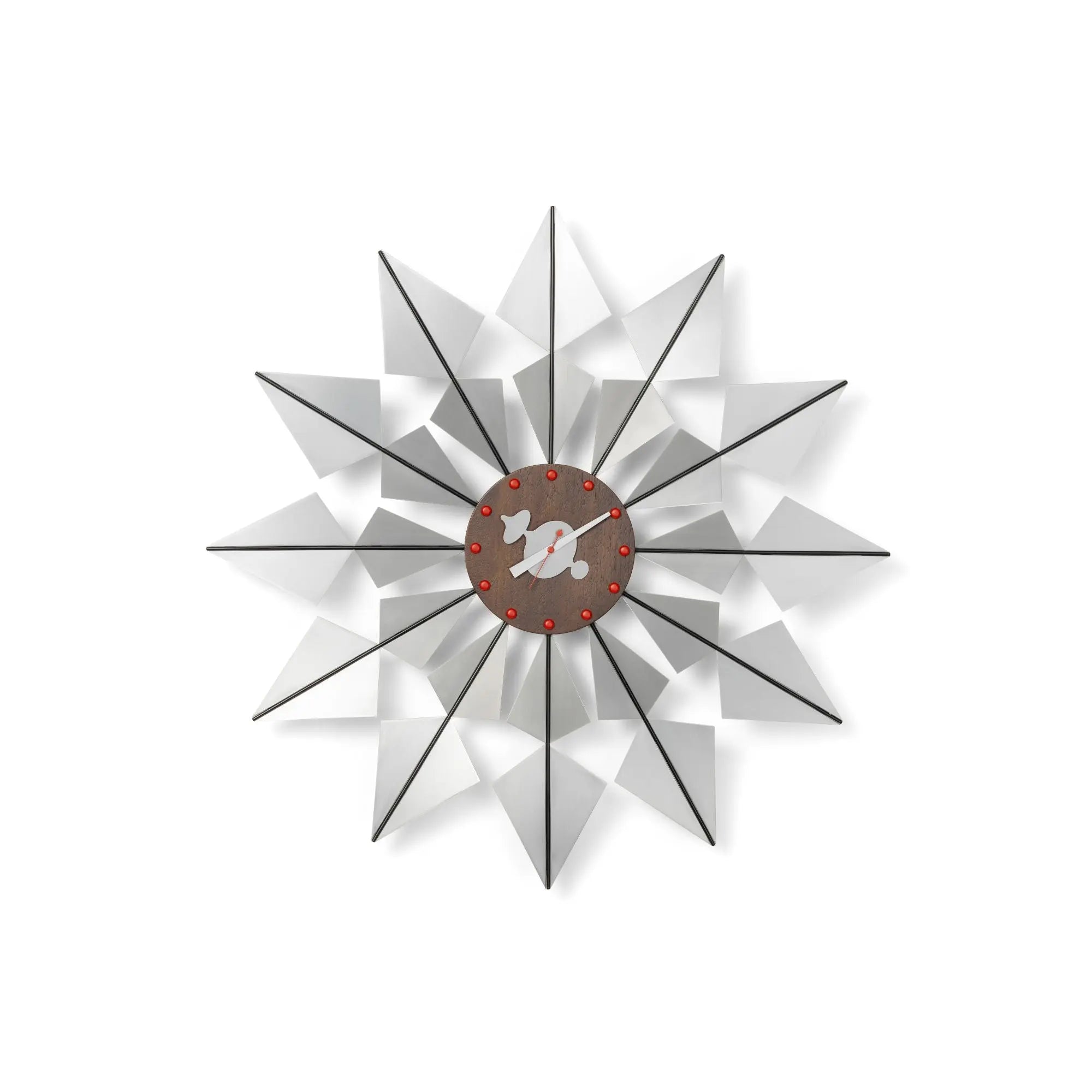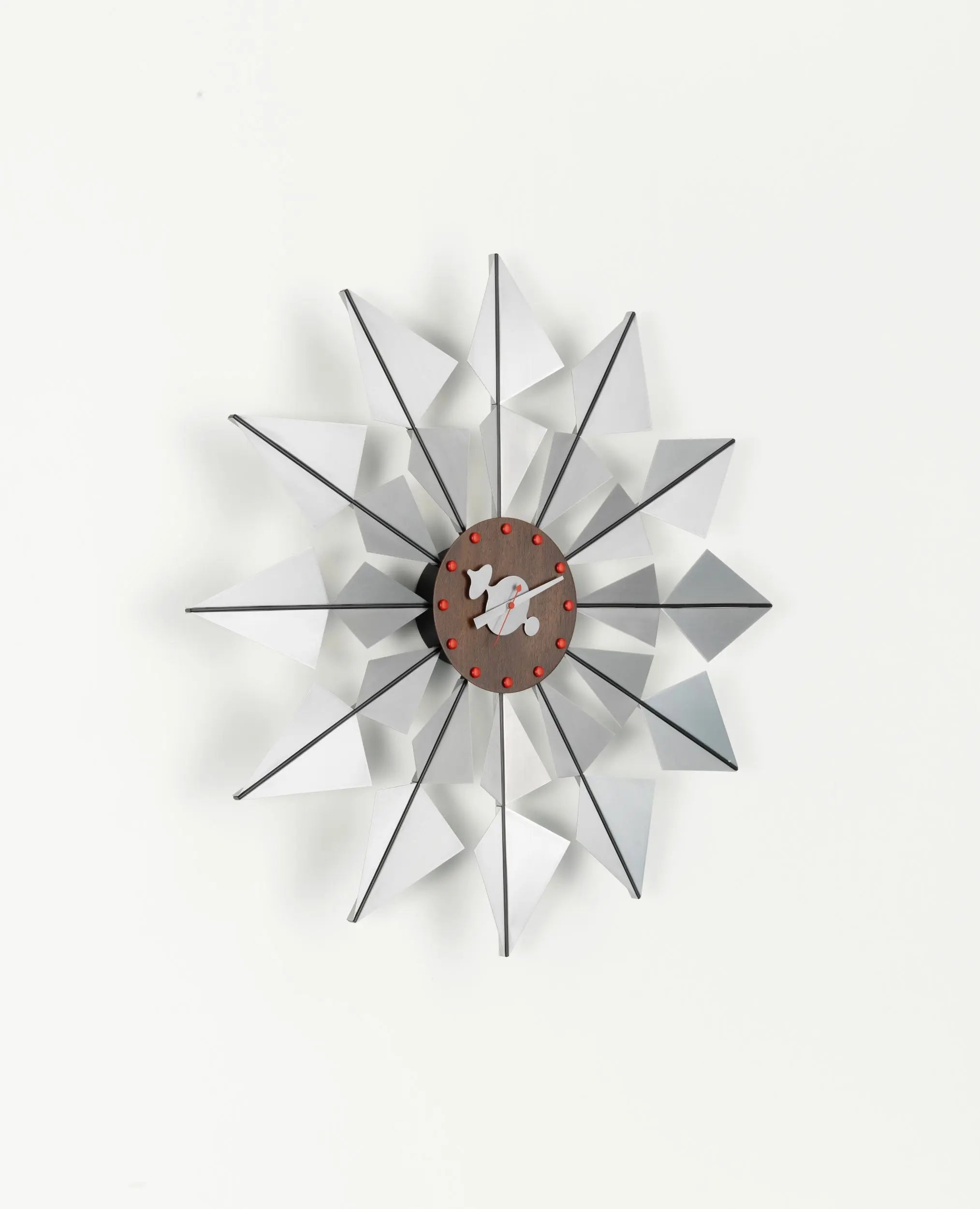 Vitra Flock Of Butterflies kello on yksi George Nelsonin vuonna 1949 suunnittelemista ikonisista seinäkelloista, jotka edustavat 1950-luvun modernia muotoilua parhaimmillaan. Kellon veistoksellinen ulkonäkö, metallinhohtoiset pinnat ja dynaaminen muotoilu tekevät siitä paitsi käytännöllisen ajan näyttäjän myös näyttävän sisustuselementin.