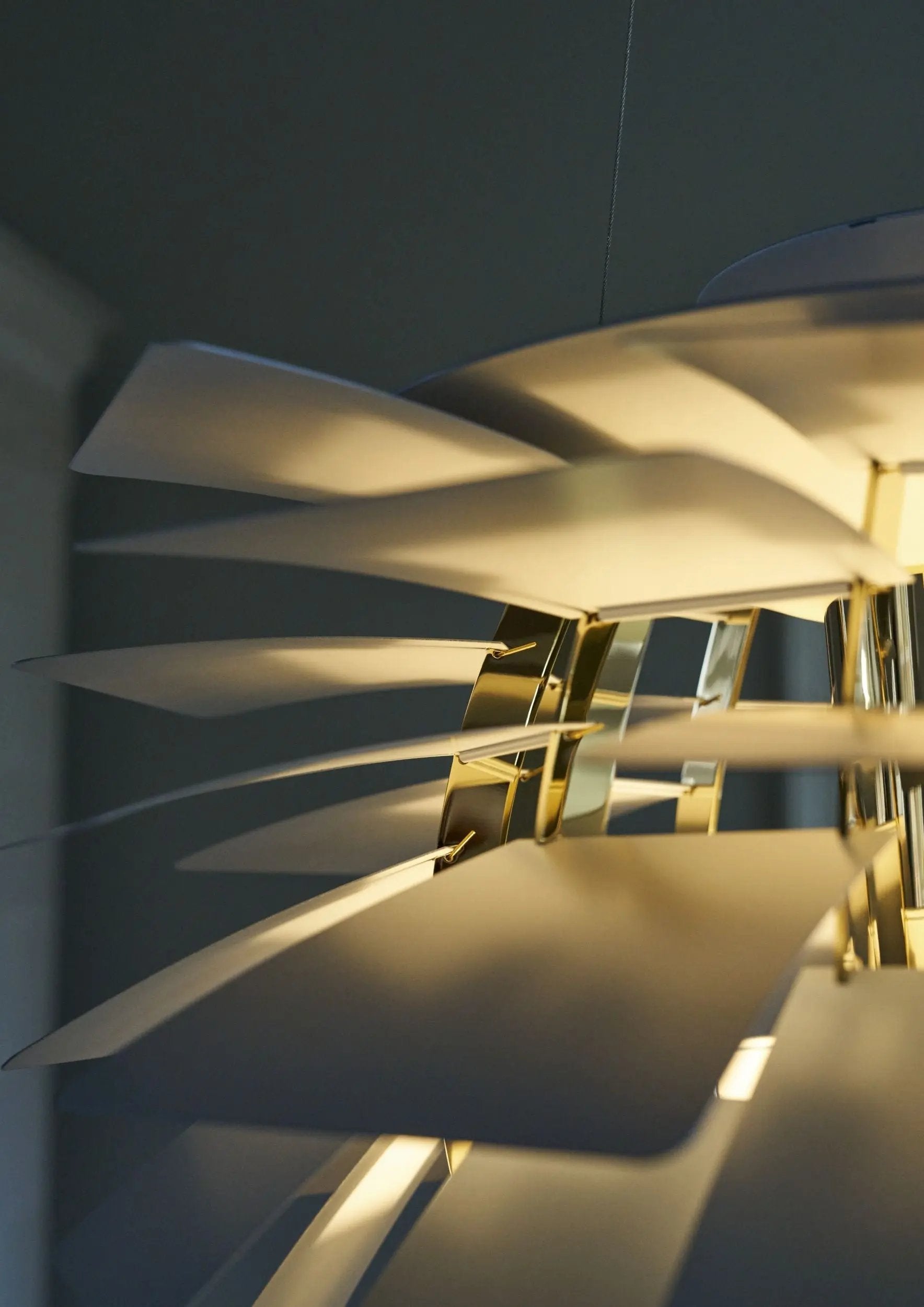 Materiaali: Lehdet terästä, runko kiillotettua ja messinkipinnoitettua terästä, ylävarjostin painosarvattua terästä, tekstiilijohto