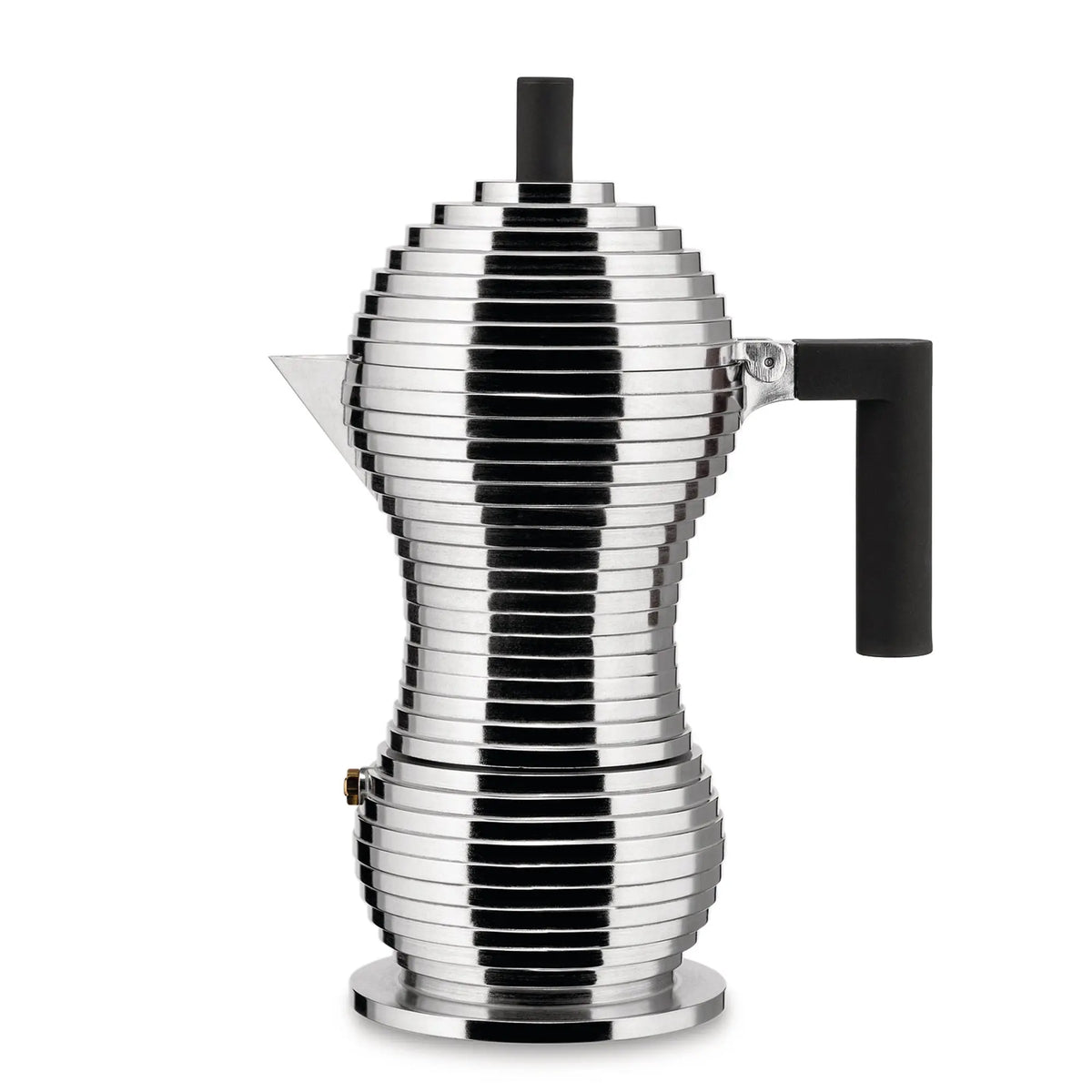 The Alessi Pulcina espresso coffee maker combines an aesthetic, layered design with a strong handle. The suede pan has a dripless small pouring spout, to which the name of the pan, which means chicken in Italian, refers to it. The Pulcina espresso coffee maker, designed by Michele De Lucchi and released in 2015, delights with its design and its function, which stops the preparation of coffee at just the right moment. You get to enjoy your drink without a bitter aftertaste.