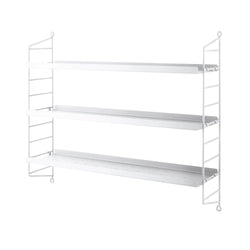 String Pocket metal shelves are sold in a convenient package that includes three metal shelves, two wall panels and the necessary mounting hardware. It is available in a variety of colors, so you are sure to find the shade that suits you.