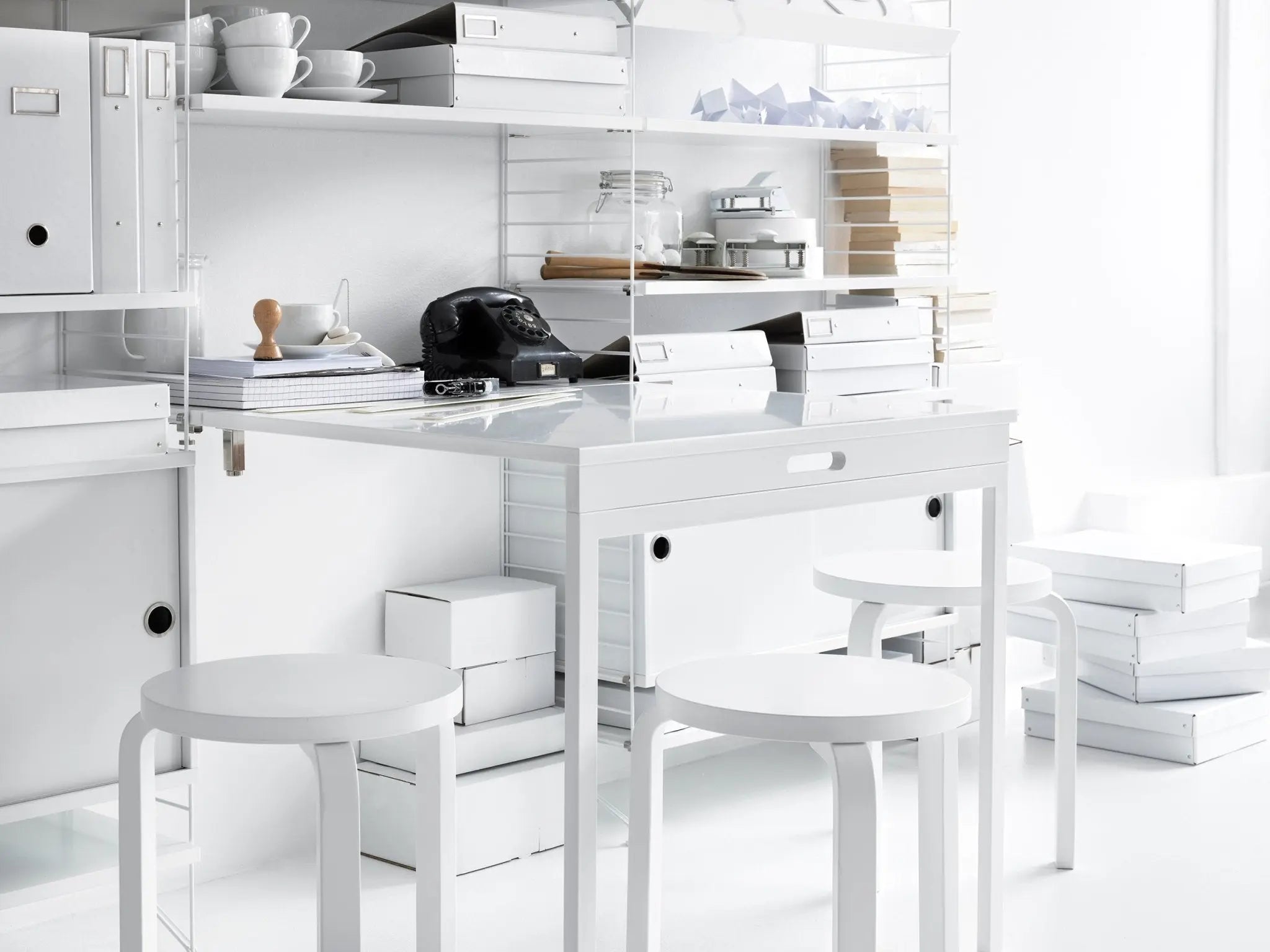 Nils Strinning designed the String shelving system in 1949. The product participated in a bookshelf design competition in Sweden and won it. The reason for the victory was the same reason why it is still very popular today. The shelves fit into a compact space and are easy to assemble and combine. They are a handy storage space for small items, and by combining them, you can make large shelf units, for example a bookshelf. From these practical starting homes was born an icon that has endured to this day.