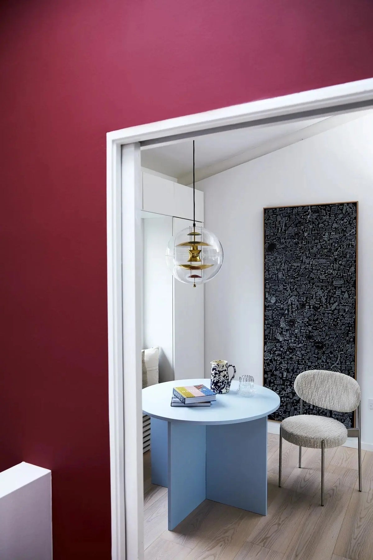 With a diameter of 40 cm, the VP Globe 40 has a minimalist yet striking design that fits well into various interiors, particularly modern and Scandinavian spaces. It serves as a statement piece in living rooms, dining areas, and public spaces. The lamp is both an aesthetic and functional design object, reflecting Panton's creative approach to space and light. It features adjustable shade plates that allow the user to control the amount and shape of light to suit the space.