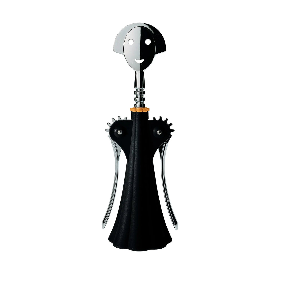 Alessi Anna G. the corkscrew has a smiling face, graceful arms and is wearing a beautifully flowing dress. The bottle opener that conforms to feminine features is a beloved classic in kitchens around the world. First produced in 1994, Anna G. is a cool tribute to women. A delightful classic product that sparks conversation and brings a smile to the user's lips.