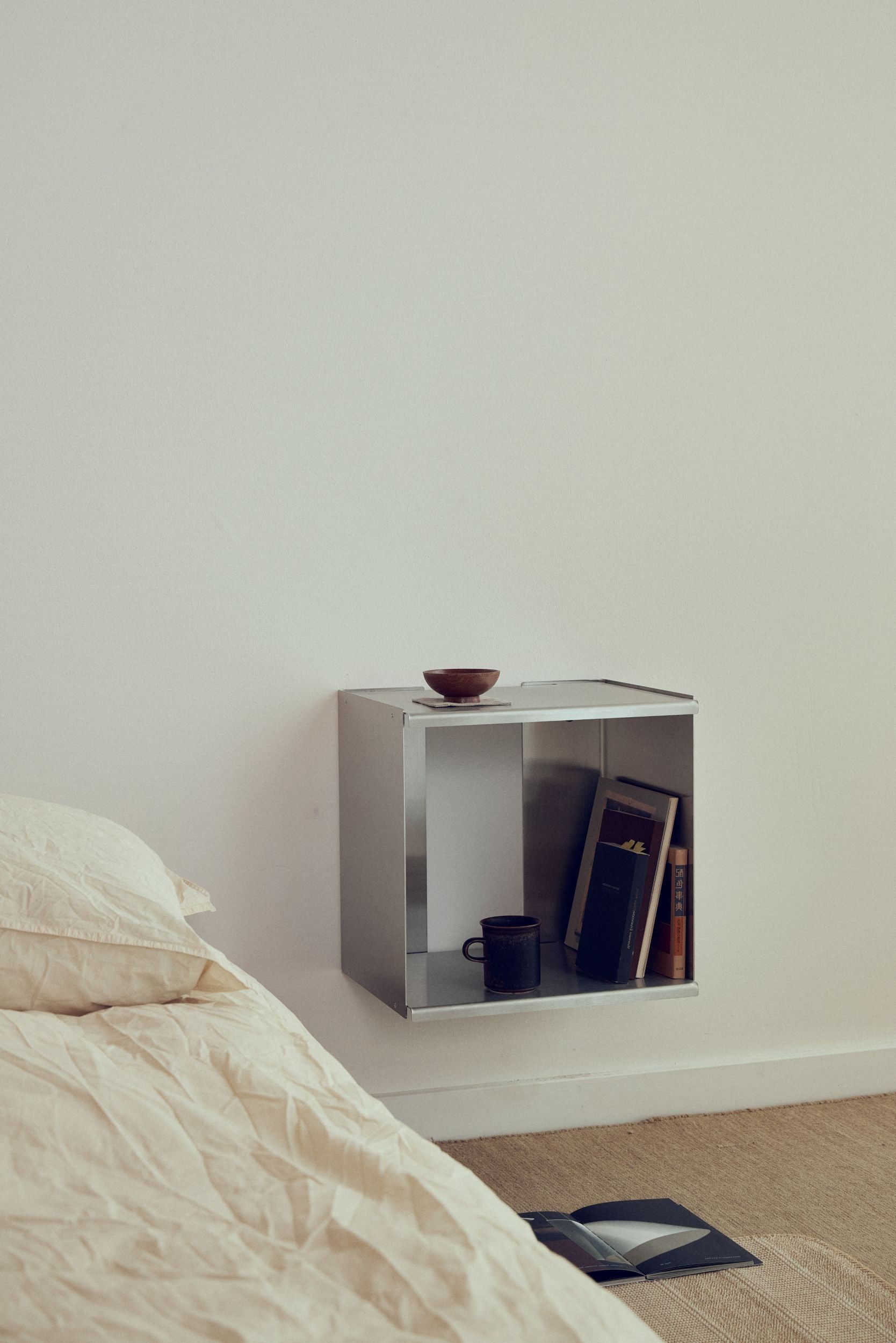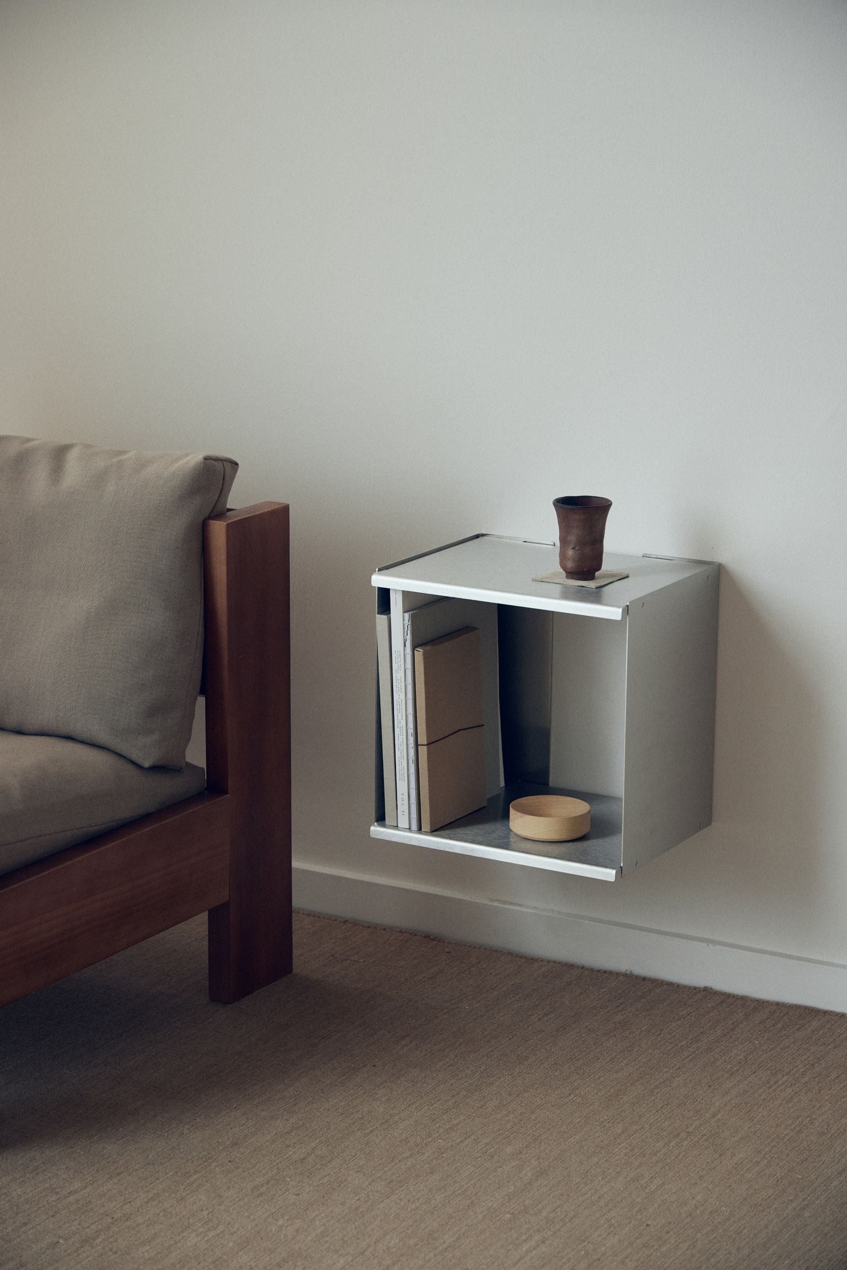 Form & Refine Taper Cube Box seinähylly hurmaa selkeällä kuutionmuotoisella designillaan, joka tekee siitä monipuolisen säilytysratkaisun erilaisiin tiloihin. Herman Studion suunnittelema avohylly sopii mainiosti esimerkiksi keittiöön, työhuoneeseen tai makuuhuoneeseen yöpöydäksi.