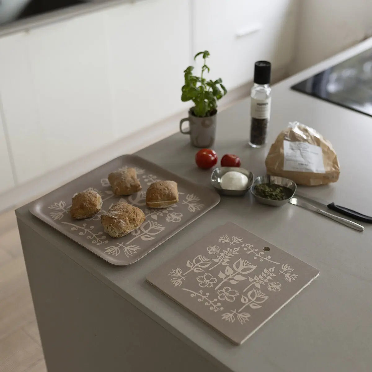 Miiko Taikapuutarha leikkuulauta on kotimainen ja ympäristöystävällinen valinta, joka on valmistettu koivuviilusta. Sen kestävä melamiinipinta on helppo pitää puhtaana ja sopii täydellisesti ruoan pilkkomiseen sekä kuumien patojen ja kattiloiden alustaksi. Lisäksi leikkuulauta toimii näyttävänä tarjoilualustana esimerkiksi juustoille, sushille tai muille herkkupaloille.