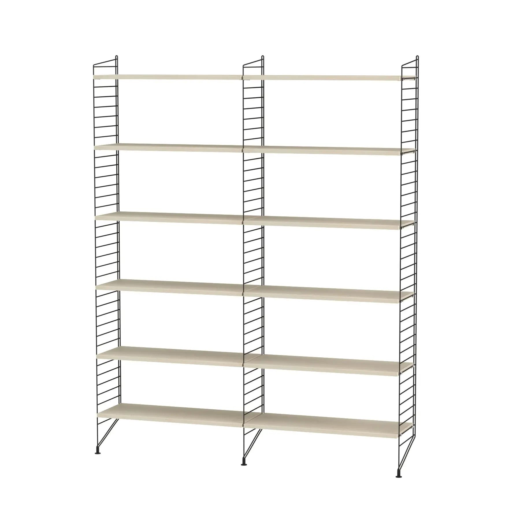 Voit koostaa kätevästi oman hyllyjärjestelmäsi Stringin omalla rakennusohjelmalla osoitteessa: https://stringfurniture.com/build-your-own