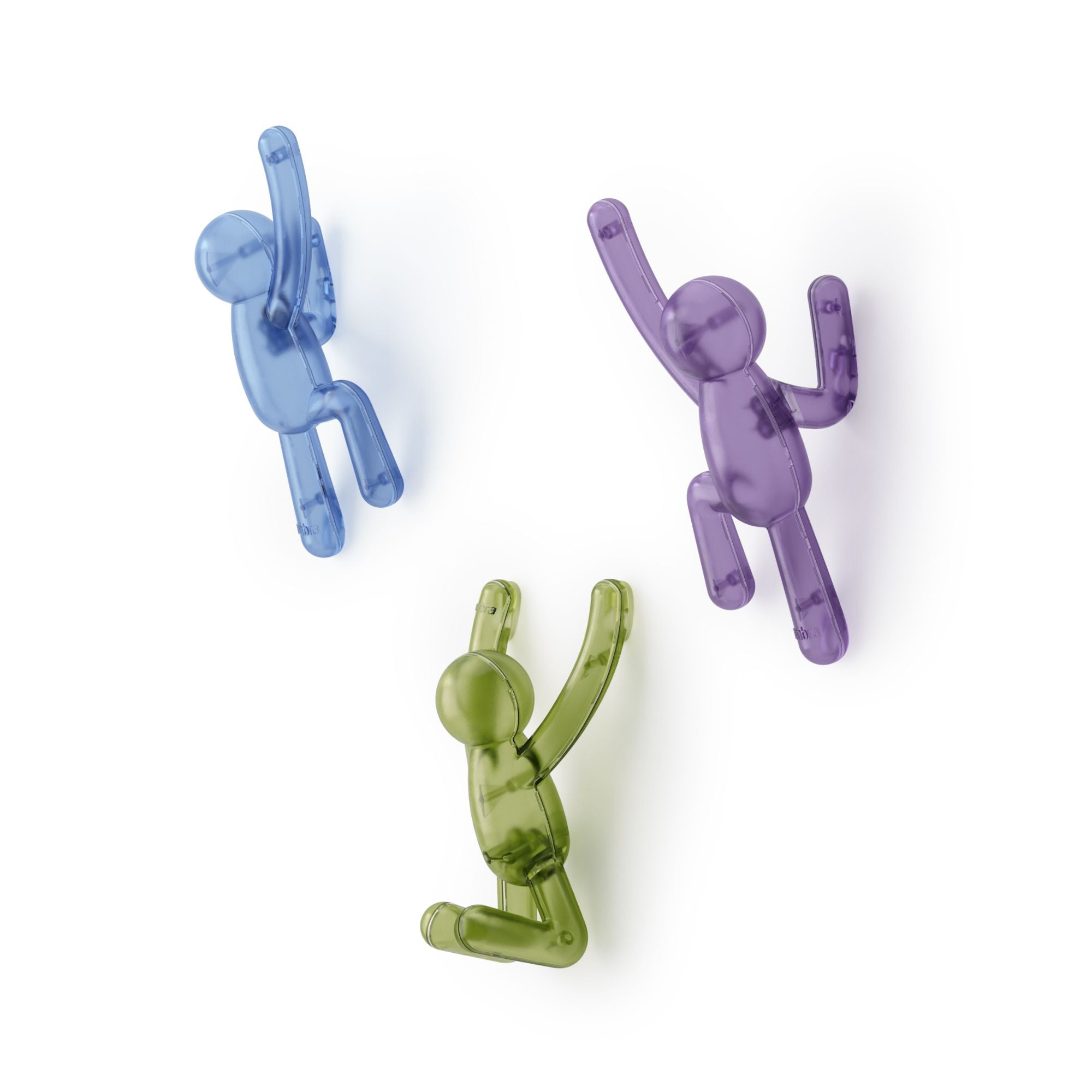 Umbra Buddy Pin-Point Hooks -naulakko setin hahmot näyttävät siltä kuin kiipeäisivät pitkin seinää. Vaatteita ja asusteita voi ripustaa hahmojen käsiin, jalkoihin ja päähän. Kun koukut eivät ole käytössä, ne toimivat hauskana ja persoonallisena seinäkoristeena, joka herättää varmasti keskustelua. Buddy-seinäkoukut ovat täydellinen lisä eteiseen ja leikkisä, tilaa säästävä vaihtoehto perinteiselle naulakolle. Valmistettu kierrätetystä muovista. Pakkaukseen kuuluu kolme eriväristä hahmoa.