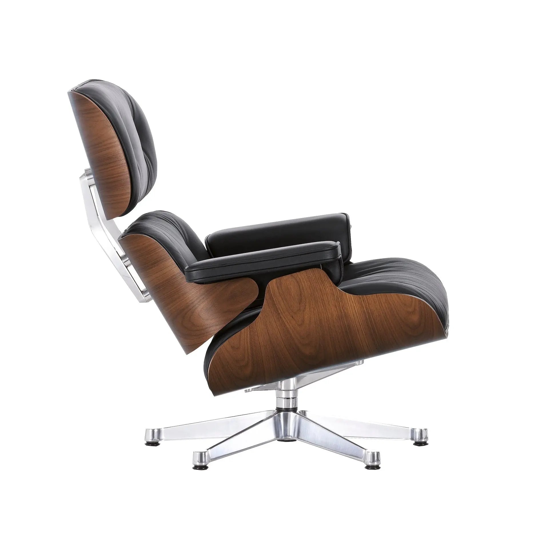 Materiaali: Muotoonpuristettu tumma pähkinävaneri, nahkaverhoilu, painevalettu alumiini, vesipohjainen lakka